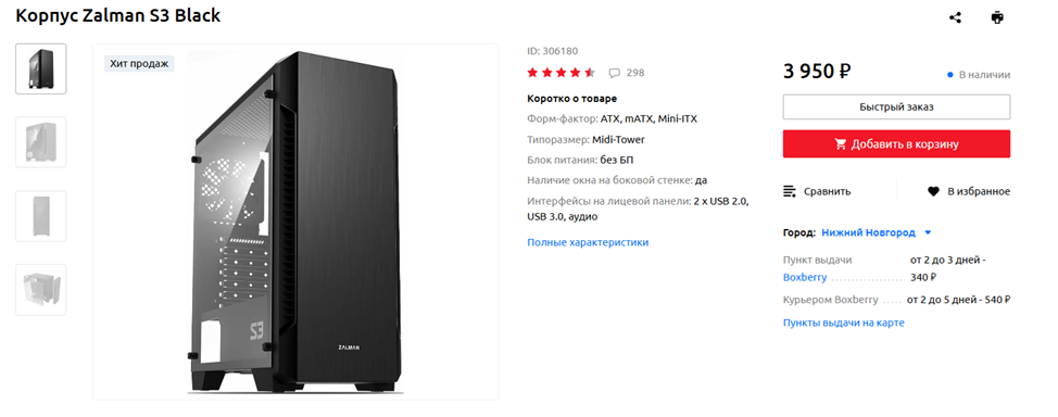 Разместить все наше железо можно в корпусе Zalman S3 – это доступный по цене игровой кейс базового уровня, который на момент написания материала можно приобрести менее, чем за 4 тысячи рублей. Выглядит шасси строго, и, при этом, достаточно современно, а к предустановленному 120-миллиметровому вентилятору, работающему на выдув, вы, при желании, можете добавить еще 6 штук. Также к преимуществам корпуса я отнесу наличие пылевых фильтров и неплохую организацию пространства – отсеки для прокладки кабелей также присутствуют. Минусы типичны для недорогих решений – тонкий металл стенок и использование акрила вместо закаленного стекла. Еще некоторые покупатели жалуются на чрезмерно яркую светодиодную индикацию, но вряд ли этот недостаток можно считать серьезным.