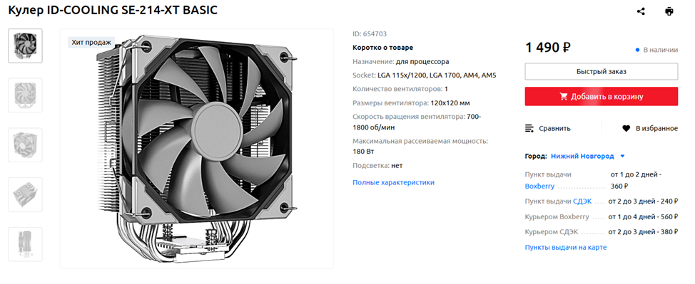 А вот систему охлаждения китайскую брать можно. Благо, решения компании ID-COOLING отличаются весьма выгодным соотношением стоимости и характеристик. Судите сами – всего за полторы тысячи рублей вы получаете башенный кулер с несколькими тепловыми трубками и 120-миллиметровым вентилятором, который способен справиться с любым современным шестиядерным процессором, если не подвергать последний ручному разгону. Скажу больше — для таких CPU, как Ryzen 5 5500 и Ryzen 3 3600 SE-214-XT BASIC даже избыточен. Это, впрочем, хорошо, а не плохо, поскольку если вентилятор не будет вращаться на околомаксимальных оборотах, не будет и чрезмерного уровня шума.