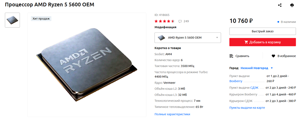 Процессор: AMD Ryzen 5 5600 OEM