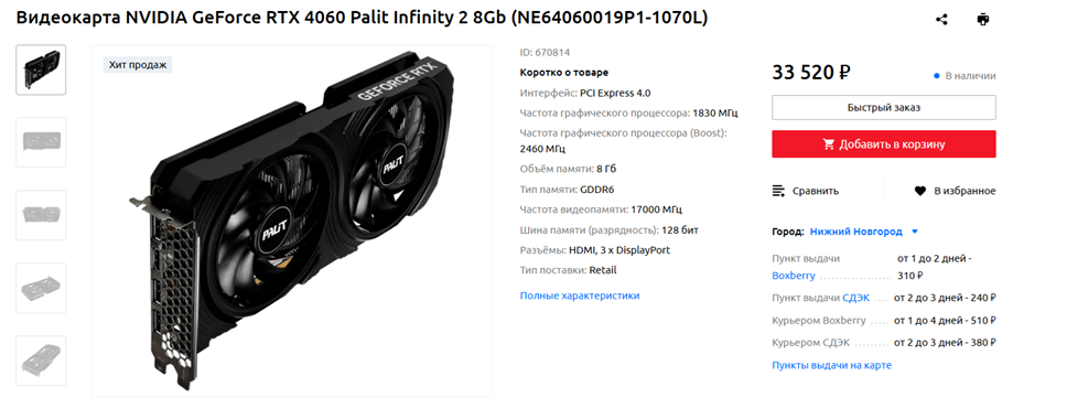 Видеокарта: NVIDIA GeForce RTX 4060 8 ГБ