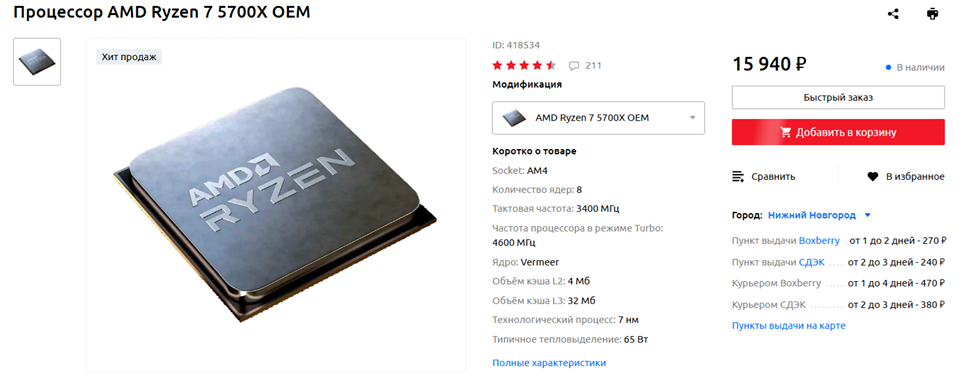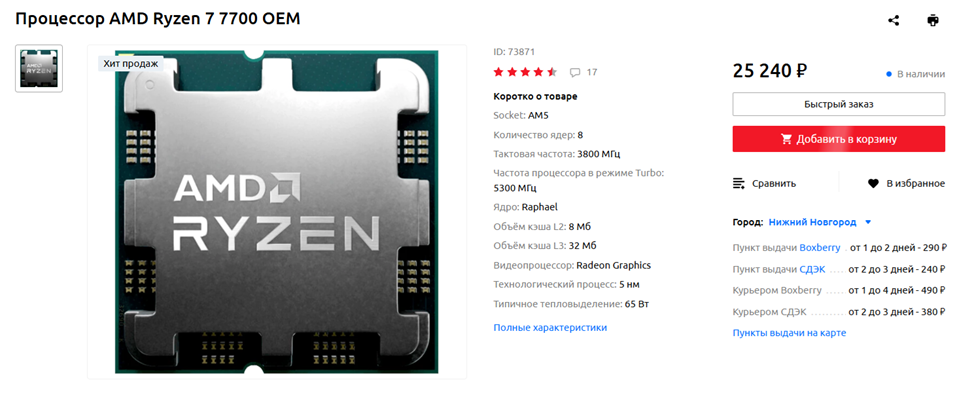 - Наиболее доступный процессор сокета AMD AM5