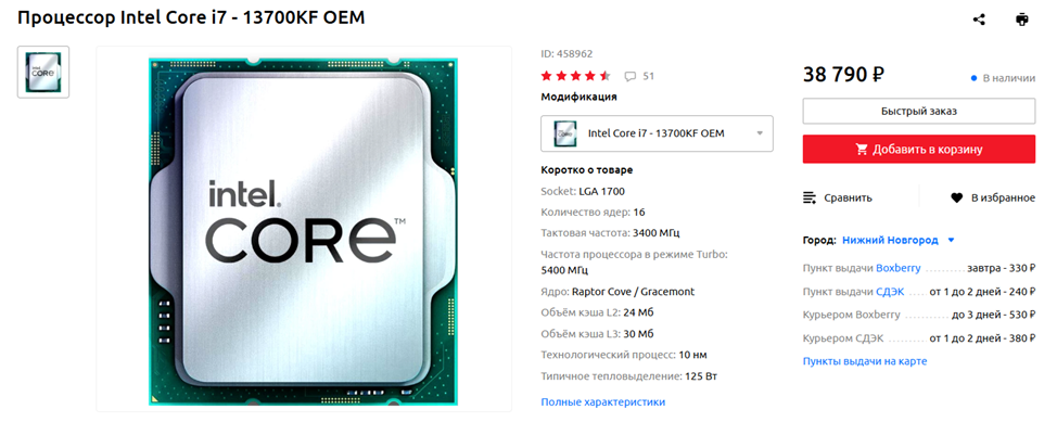 ТОП-3 процессора стоимостью от 30 до 50 тысяч рублей, актуальных для игр в 2024 году
