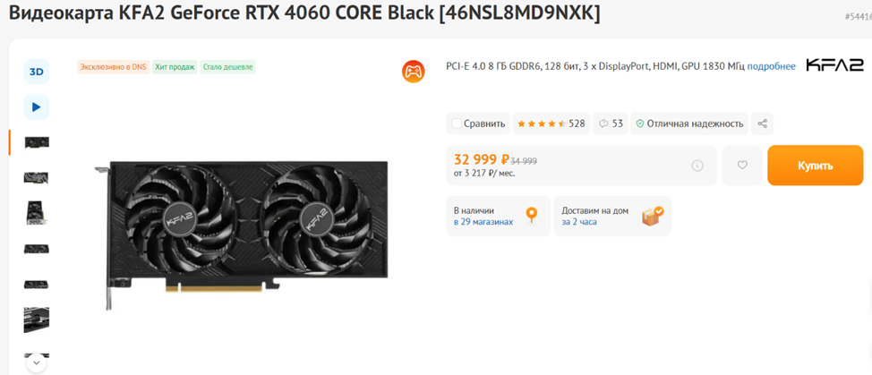 Видеокарта: NVIDIA GeForce RTX 4060 8 ГБ