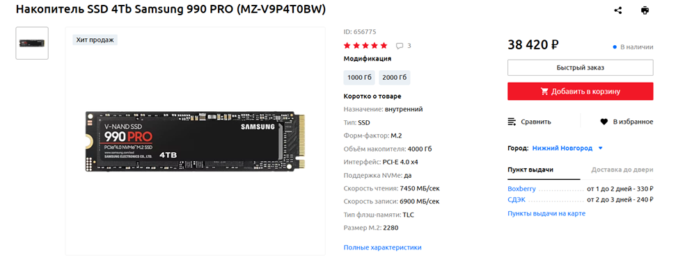 - Один из самых дешевых PCI-E четырехтерабайтников