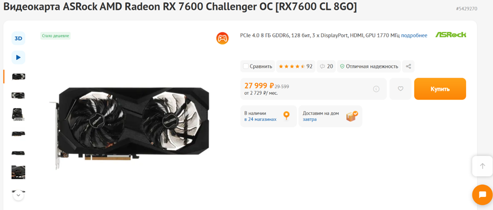 Видеокарта: AMD Radeon RX 7600 8 ГБ