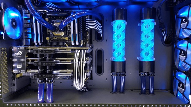 СЖО занимает большой объем и 2-3 места для вентиляторов