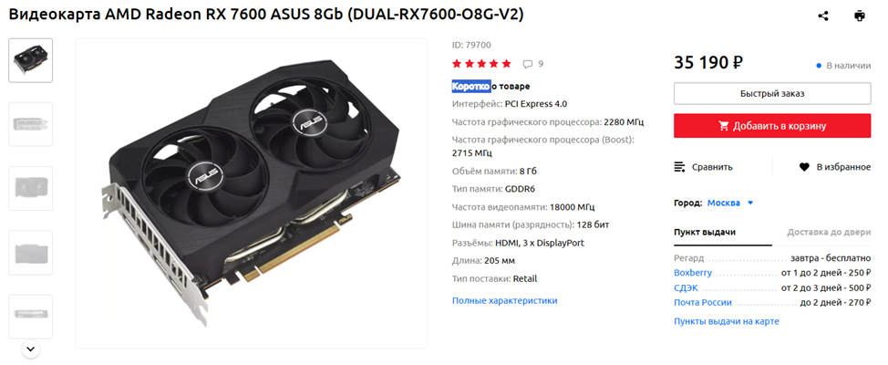Так же, как AMD Ryzen 5 5600 с Intel Core i5-12400F – это народные процессоры, NVIDIA GeForce RTX 4060 и AMD Radeon RX 7600 – это народные видеокарты. Судите сами — «семь тысяч шестисотая» почти не уступает конкурирующей модели «зеленых» в сценариях без трассировки лучей, при этом стоит она дешевле. Да, энергопотребление и тепловыделение у RX 7600 повыше, но эти показатели все-таки остаются в рамках разумного – компактной двухвентиляторной системы охлаждения для отвода тепла хватает без проблем. Ничего удивительного, что я часто рекомендую эту видеокарту в статьях рубрики «Народный ПК», когда речь заходит об игровых конфигурациях стоимостью до 80 тысяч рублей. А вот если бюджет на системный блок составляет 100 и более тысяч рублей, то можно присмотреться к более производительным вариантам, хотя и RX 7600 позволяет без проблем играть в разрешении FullHD, пусть и не всегда на ультра настройках.