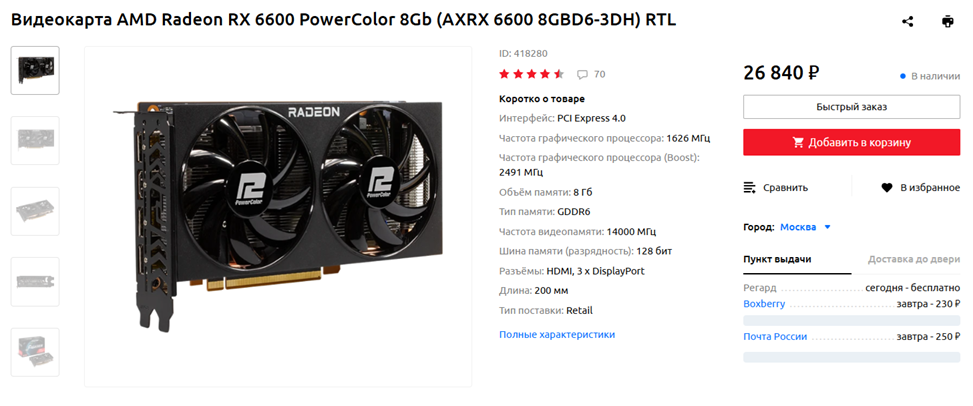 AMD Radeon RX 6600 – видеокарта далеко не новая, и она значительно уступает RX 7600 – разница в среднем составляет около 25-32% FPS. Тем не менее, у «шесть тысяч шестисотой» есть как минимум два преимущества – невысокая цена и наличие 8 гигабайт видеопамяти. Если вы хотите играть в разрешении FullHD в нетребовательные и/или старые игры, либо, возможно, в какие-то легкие сессионные проекты, а также готовы мириться с необходимостью ставить средние, а изредка и низкие настройки графики, рассматриваемая модель вполне может вам подойти. Но лучше, конечно, добавить денег и взять RX 7600 или RTX 4060 – поверьте, это того стоит.