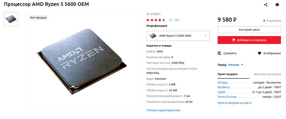Процессор: AMD Ryzen 5 5600 OEM