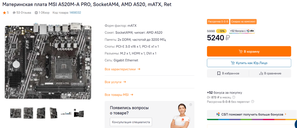 Материнская плата: MSI A520M-A PRO
