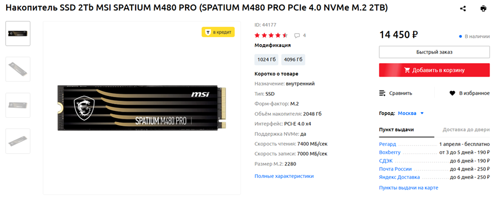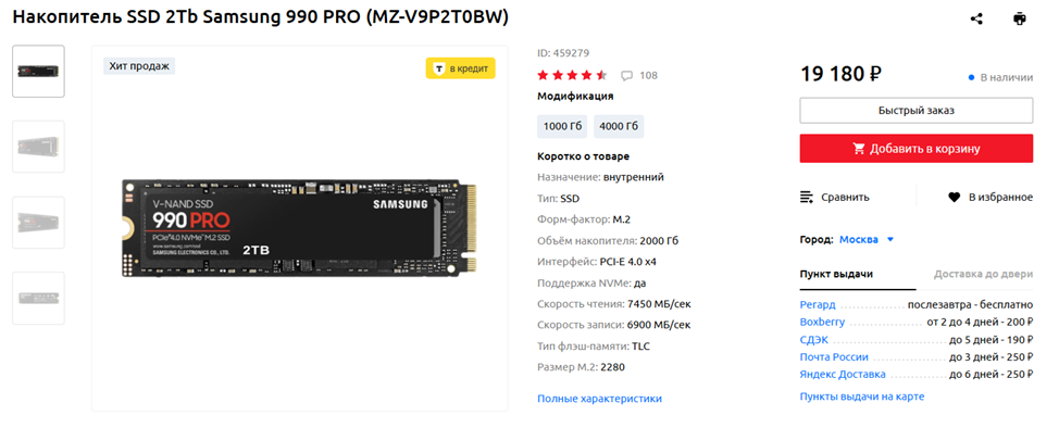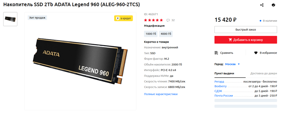 На мой взгляд, самый лучший выход, если вам действительно не хватает места на вашем SSD — купить еще один SSD. Заработать на него вы можете написанием статей и новостей на overclockers.ru — я так собрал себе в 2023 году игровой ПК с Core i7-13700KF и GeForce RTX 4090. Приведу несколько примеров твердотельных накопителей, заслуживающих внимания.