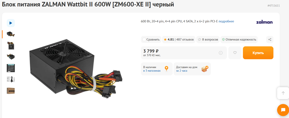 Конфигурация у нас вышла достаточно нетребовательная, и блока питания на 500+ честных ватт ей хватит с солидным запасом. Бюджетный сегмент российского рынка БП, как известно, стоит на трех китах — Chieftec, DeepCool и Zalman, и именно из их ассортимента я предложу выбрать подходящую модель. Отлично подойдет, например, ZALMAN Wattbit II 600W ZM600-XE II или DeepCool PF600 — выбирайте любой, характеристики у обоих для своего сегмента приличные, и проблем со стабильностью напряжений или пульсациями не будет. Что же касается сверхвысокого КПД — в рассматриваемом ценовом сегменте рассчитывать на него не стоит, но он не слишком и нужен, поскольку переплата за электричество в любом случае будет копеечной и точно не перекроет разницу между доступным БП и премиальной моделью с сертификатом Titanium.
