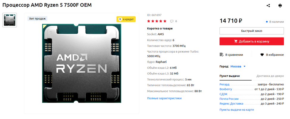 AMD Ryzen 5 7500F — в первую очередь, процессор для пользователей, собирающих ПК с целью дальнейшего апгрейда в рамках платформы AM5. Входной билет для этого сокета. Сам по себе проц не демонстрирует каких-то особенно впечатляющих результатов в плане игровой производительности. Да, Ryzen 5 5600, а также Intel Core i5-12400F/13400F/14400F он в гейминге перегоняет, но 13600KF/14600KF проигрывает с треском — это просто разные весовые категории. Да и шесть ядер по меркам 2025 года — маловато. Тем не менее, модель станет хорошим выбором для пользователей, планирующих в дальнейшем приобрести более мощный и дорогостоящий AMD AM5 CPU. Например, условный Ryzen 7 10800 или даже 10800X3D. Но учтите — чтобы провернуть подобный финт, материнскую плату стоит выбирать с приличной подсистемой питания, защищенной радиаторами.