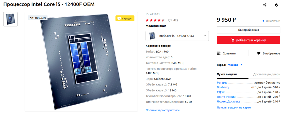 Intel Core i5-12400F — это один из двух доступных по цене процессоров, которые я называю народными шестиядерниками. Когда рубль был дешевле, а цены выше, я часто рекомендовал «двенадцать тысяч четырехсотый» для конфигураций стоимостью 80-100 тысяч рублей. Сейчас же он актуален для еще более недорогих сборок — модель по-прежнему нельзя назвать морально устаревшей, поскольку она неплохо смотрится в связке с графическими ускорителями бюджетного и среднего сегментов. Конечно, к RTX 5070 стоит уже брать процессор помощнее, а вот с RX 7700 XT или RTX 5060 Ti Core i5-12400F будет смотреться уместно. Некоторый перекос стоимости и производительности в сторону видеокарты — это совершенно нормально. Главное, чтобы процессор не был совсем уж узким местом — какой-нибудь слабенький двухъядерный или четырехъядерный CPU для игр брать в 2025 году однозначно не стоит.