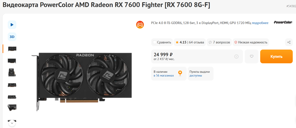 Стоимость «семь тысяч шестисотой» в ближайшее время может дополнительно понизиться — на рынок выходят недорогие игровые видеокарты нового поколения, а именно GeForce RTX 5060 и Radeon RX 9060. Что же касается плашки «низкая надежность» на скриншоте — по поводу нее не переживайте. Это всего лишь означает, что по данной модели обращаются в СЦ в среднем чаще, чем по категории «видеокарты» в целом. При этом если кликнуть мышкой, появляется уточнение, что частота обращений не превышает 1,2% против обычных 0,7 %. И то, и то — пренебрежимо мало.