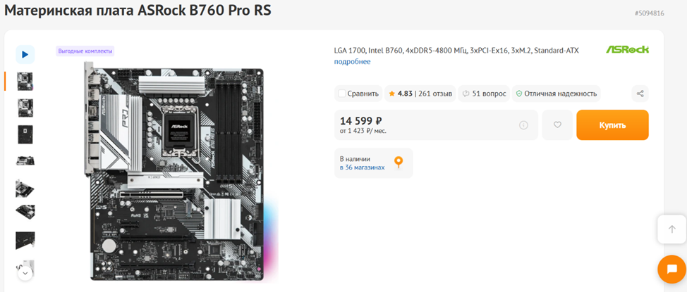 Материнская плата: ASRock B760 Pro RS