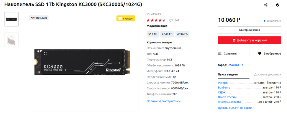 SSD: Kingston KC3000 1 ТБ