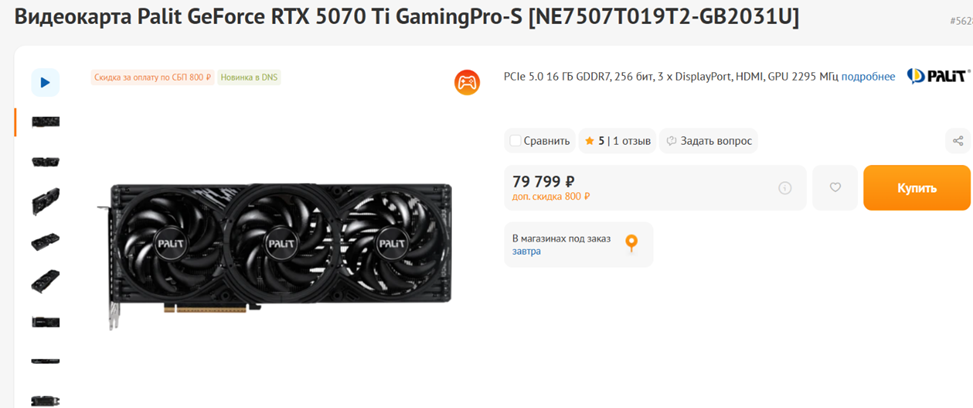Видеокарта: NVIDIA GeForce RTX 5070 Ti 16 ГБ