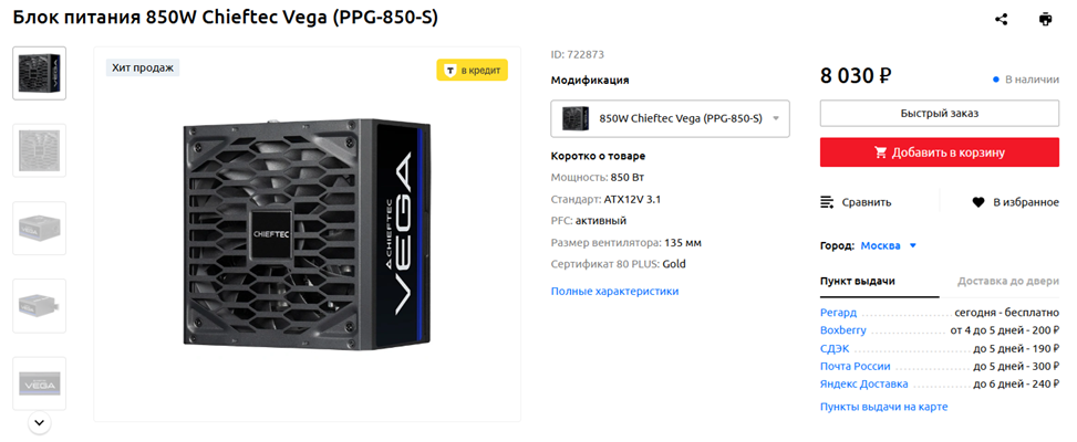 Блок питания: Chieftec Vega PPG-850-S