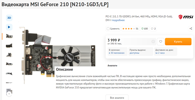Заполнявший карточку видеокарты MSI GeForce 210 для магазина DNS человек написал, что решение предлагает «впечатляющую вычислительную мощь». По сравнению с мозгом того, кто мог подобное написать, может, и действительно впечатляющую. Возможно, копирайтер на деньги от заполнения карточек товаров купил себе такую карточку и наслаждается ее невероятной производительностью в таких «требовательных» играх, как первая часть Gothic или Герои Меча и Магии 3. А ведь попросит, например, сын у не шарящих в комплектующих родителей мощную игровую видеокарту на День рождения, они прочитают описание и купят…