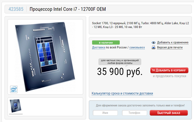 Процессор: Intel Core i7-12700F OEM
