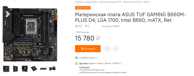 Материнская плата: ASUS TUF GAMING B660M-PLUS D4