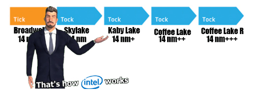 Теперь перейдем к следующей теме – пресловутым «5 процентам в год» и копировании Intel одной и той же ядерной формулы в течение шести лет. 2011 год: Sandy Bridge, Core i7-2600k, 4 ядра, 8 потоков. 2017 год: Kaby Lake-S, Core i7-7700K, 4 ядра, 8 потоков. Интересно, если бы не AMD с ее процессорами Ryzen, мы так и сидели бы на процессорах с 4 ядрами и 8 потоками, или Intel бы расщедрилась, и выделила для Core i7 хотя бы 6 ядер и 12 потоков, как сейчас в Core i5?