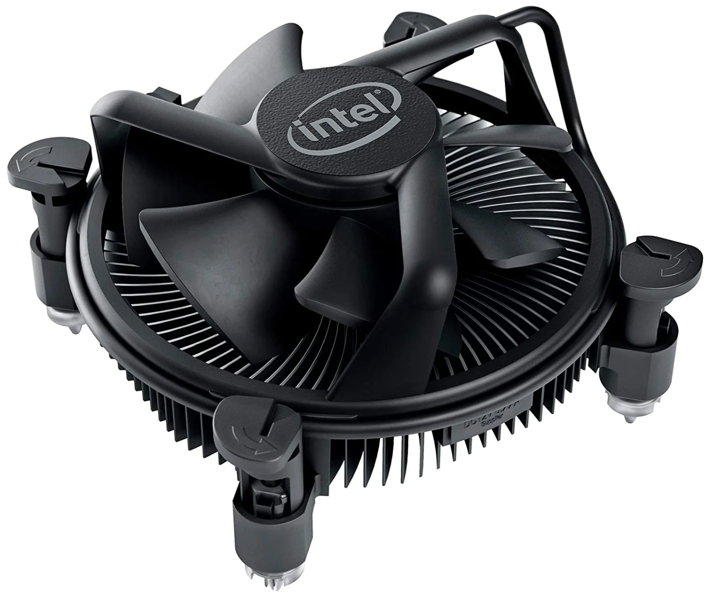 Еще одна претензия, связанная с охлаждением. Боксовые кулеры. Возьмем, например, Intel Core i5-11400. В стресс-тестах с отключенным лимитом TDP этот процессор может потреблять за 140-150 Вт. Боксовый кулер (на фото выше) не справляется с такой нагрузкой – и еще бы справлялся, с такой-то площадью радиатора. Алюминий – это самый распространенный в мире металл, он стоит копейки, а Intel жалеет его на радиатор. Про вентилятор тоже ничего хорошего не скажу – он не очень эффективный и шумный.