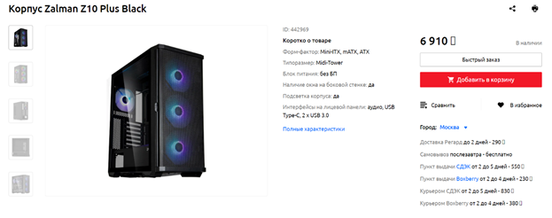 Кто-то из читателей может начать ругаться в комментариях, что в этом топе слишком много корпусов от Zalman, но что я могу поделать, если компания предлагает одни из лучших на рынке решений по соотношению цены и характеристик? Не включить Z10 Plus в список было бы несправедливо, поскольку по своим возможностям он соответствует многим шасси стоимостью 9-10 тысяч рублей. Помимо отличного охлаждения, обеспечиваемого четырьмя установленными с завода вентиляторами, модель может похвастаться демократичными ограничениями по высоте кулера и длине видеокарты – 173 мм и 395 мм соответственно. Придраться можно разве что к довольно тонкому металлу стенок и наличию всего двух посадочных мест для 3.5-дюймовых жестких дисков, в остальном кейс подходит для создания любых, даже топовых конфигураций.