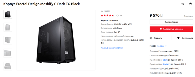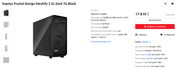 Если из производителей SSD мне больше всего импонирует Samsung, то в случае компьютерных корпусов безусловный лидер в рейтинге моих симпатий – шведская компания Fractal Design. В их шасси все продумано до мелочей – и организация пространства, и ниши для укладки кабелей, и направление воздушных потоков. Как и многие другие модели Fractal Design, Meshify C Dark TG может похвастаться наличием пылевых фильтров, особенностью же данного корпуса является использование для боковой панели тонированного закаленного стекла – большинство решений шведской фирмы смотрятся более консервативно и строго. Кулеры в корпус поместятся любые, а вот видеокарты – нет, жестких дисков установить больше пары штук тоже не получится, поэтому если хотите более просторный кейс с большим количеством посадочных мест для накопителей – обратите внимание на Define R5.