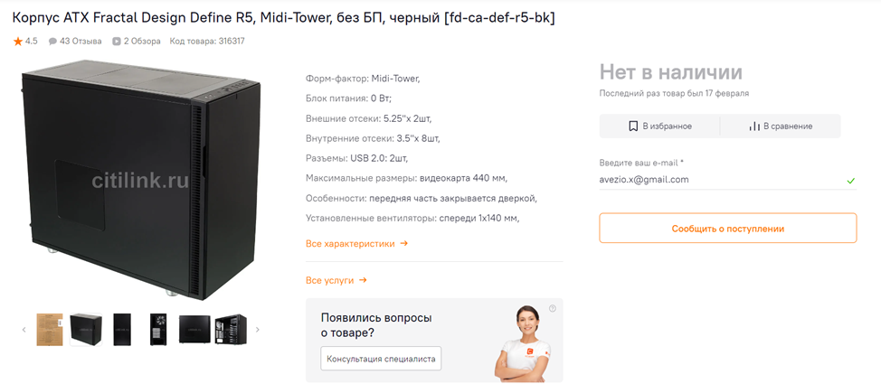 Define R5 подошел идеально, а приобрел я его в середине сентября по акции в Ситилинке всего за 10100 рублей. В дальнейшем, при сборке, я заменил штатные вентиляторы на вертушки Noctua, а также добавил еще пару, и переставил корзины для жестких дисков. Блок для 5.25-дюймовых приводов я убрал полностью, одну корзину на 5 дисков закрепил сверху, а другую на 3 – снизу, чтобы они не мешали видеокарте. И они не мешают, хотя видеокарта у меня очень и очень габаритная. Покупкой доволен на 100%, особенно с учетом того, что отдал немногим больше 10 тысяч.