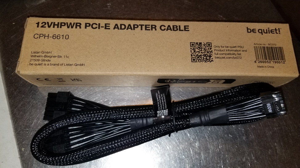 Что же касается переходника – я заказал через друга из Казахстана фирменный кабель-адаптер be Quiet. Переходник с двух разъемов на один – гораздо удобнее, чем с четырех. К тому же, разъем не нагревается даже до 55 градусов по Цельсию, проверял, прогоняя стресс-тесты вроде фурмарка с увеличенным до 500 Вт Power Limit.