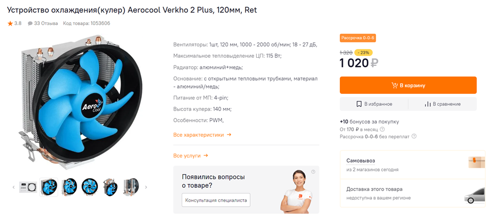 Aerocool Verkho 2 Plus на фоне других кулеров стоимостью «около тысячи рублей» смотрится весьма выгодно. Во-первых, это башенная модель с теплотрубками, что в таком ценовом сегменте – уже достижение. Во-вторых, в комплект входит 120-миллиметровый вентилятор, что определенно лучше, чем если бы производитель выбрал 92-миллиметровый или другой. И в-третьих, поддерживается автоматическая регулировка скорости вращения лопастей. Подавляющее большинство воздушных систем охлаждения, которые предлагаются за те же деньги в отечественных магазинах, лишены как минимум одного из этих трех преимуществ. Для скептиков: могу заверить, что Verkho 2 Plus лучше боксового кулера Intel по эффективности отвода тепла, а еще тише работает, особенно на средних оборотах.