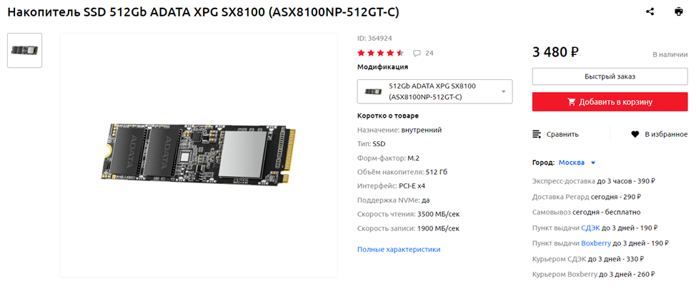 SSD: ADATA XPG SX8100 512 ГБ