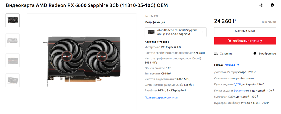 Видеокарта: AMD Radeon RX 6600 8 ГБ
