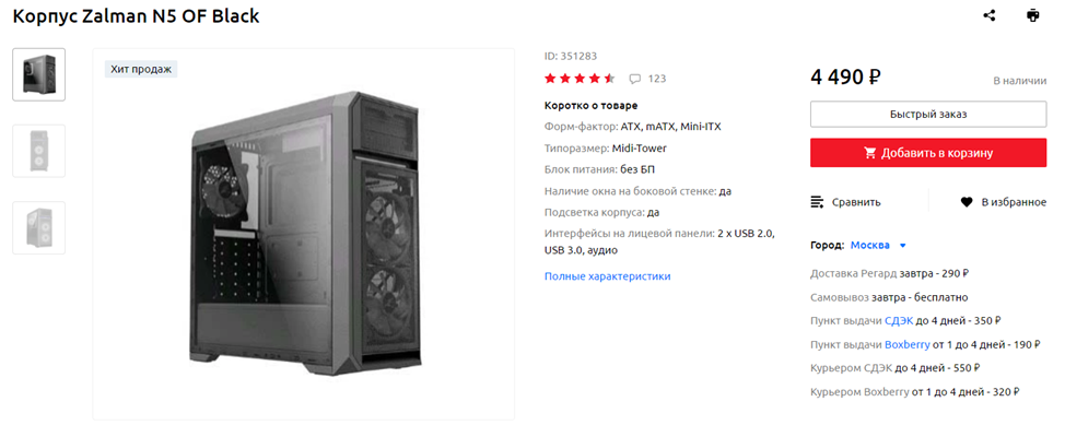 Я часто рекомендую корпус Zalman N5 OF для бюджетных и среднебюджетных сборок и делаю это не просто так, а за деньги. На самом деле, в настоящий момент это один из лучших вариантов в своей ценовой категории. Судите сами – модель предлагает достаточное количество места для среднебюджетной или даже продвинутой игровой конфигурации, а также по-умолчанию оснащена тремя 120-миллиметровыми вентиляторами, чего хватит для практически любой сборки, которую только целесообразно размещать в подобном корпусе. Выглядит решение также вполне привлекательно – строго, но современно. Конечно, боковая стенка выполнена из акрила, а не из стекла, но это все-таки бюджетный сегмент. Благо, Zalman, как правило, не страдает от таких проблем, как плохое качество сборки изделий или недостаточная обработка элементов – «заусенцы», как у китайских Noname-шасси вы вряд ли увидите.
