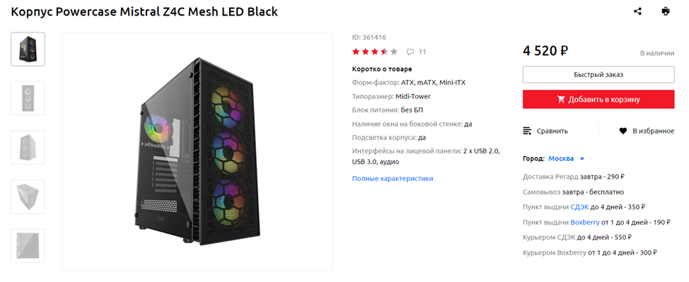 Powercase Mistral Z4С Mesh LED – корпус среди компьютерщиков и геймеров не особо известный, тем не менее, за свои деньги он вполне неплох. Пожалуй, минус у него только один, хотя и достаточно серьезный – нерегулируемые вентиляторы. Они шумноваты, и, если вы не используете наушники, рядом с ПК может быть не особо комфортно. Если же вы всегда сидите в наушниках – то этот нюанс не доставит вам проблем. Теперь о плюсах шасси. К ним можно отнести отличную продуваемость, обеспечиваемую уже упомянутыми вертушками – их, кстати, по-умолчанию, четыре, но вы можете добавить еще парочку, а также обилие свободного места и привлекательный внешний вид. Имеются пылевые фильтры, предусмотрен кабель-менеджмент. В общем, если бы не вертушки без возможности снижения скорости вращения лопастей – вероятно, это был бы один из лучших корпусов в ценовом диапазоне до 5 тысяч рублей.
