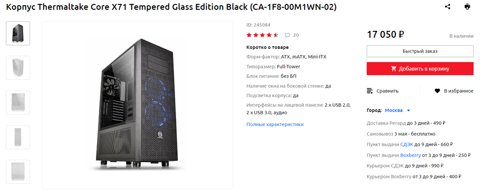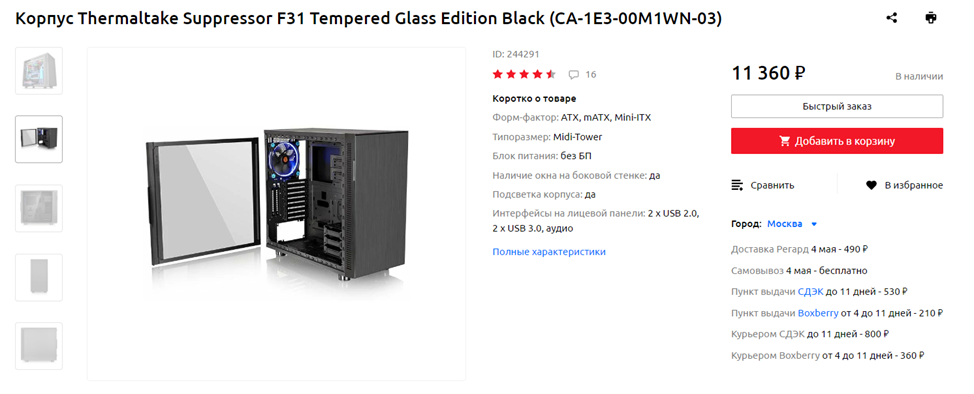 - Громадное количество свободного места даже при установке габаритных комплектующих