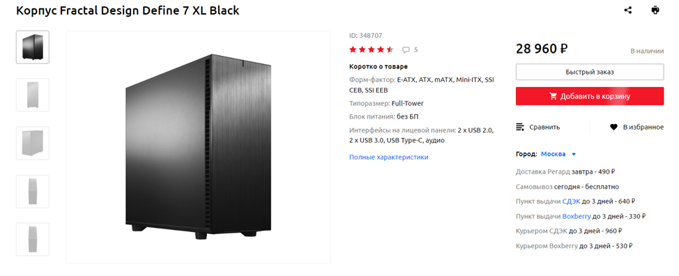 Российские магазины задрали на Fractal Design Define 7 XL цену, но, с учетом того, насколько это вместительный и крутой практически по всем параметрам корпус, я все равно включил его в список. Вы просто взгляните на характеристики – смонтировать 420-миллиметровый или 480-миллиметровый радиатор СЖО можно не только на переднюю, но и на верхнюю панель, а сколько здесь слотов расширения и посадочных мест для накопителей и вентиляторов…хватит любому геймеру. Не стоит забывать и про такие плюсы, как модульная конструкция, шумоизоляция и расширенная комплектация, а также продуманная организация пространства, включающая в себя, помимо всего прочего, и кабель-менеджмент.