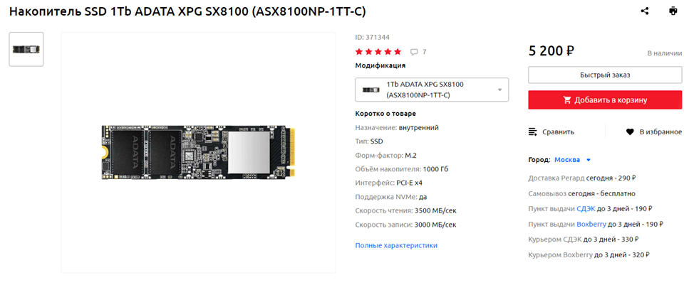 SSD: ADATA XPG SX8100 1 ТБ