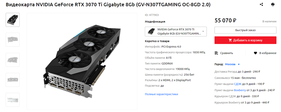 Видеокарта: NVIDIA GeForce RTX 3070 Ti 8 ГБ