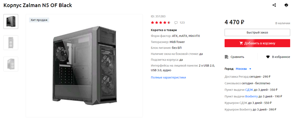 Zalman N5 OF – один из лучших корпусов в своей ценовой категории, по крайней мере, после того, как еще два шасси того же производителя (Z3 Plus и I3 Edge) заметно подорожали. В отличие от многих конкурирующих решений, он достаточно хорошо продуман с инженерной точки зрения и обладает достойной организацией пространства, а также по-умолчанию оснащен тремя 120-миллиметровыми вентиляторами. Для рассматриваемой в статье конфигурации этого более, чем достаточно, при этом данный кейс можно использовать и для сборок с более высоким тепловыделением, но тогда желательно докупать как минимум один вентилятор – на выдув, на верхнюю панель. Серьезный недостаток у Zalman N5 OF только один – ограничение по высоте процессорного кулера. Увы, но топовые «башни» не влезут – для Noctua NH-D15 лучше выбирать что-то другое.
