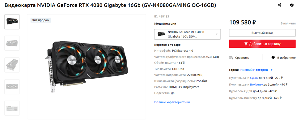 Игровая видеокарта для 4K – NVIDIA GeForce RTX 4080 16 ГБ