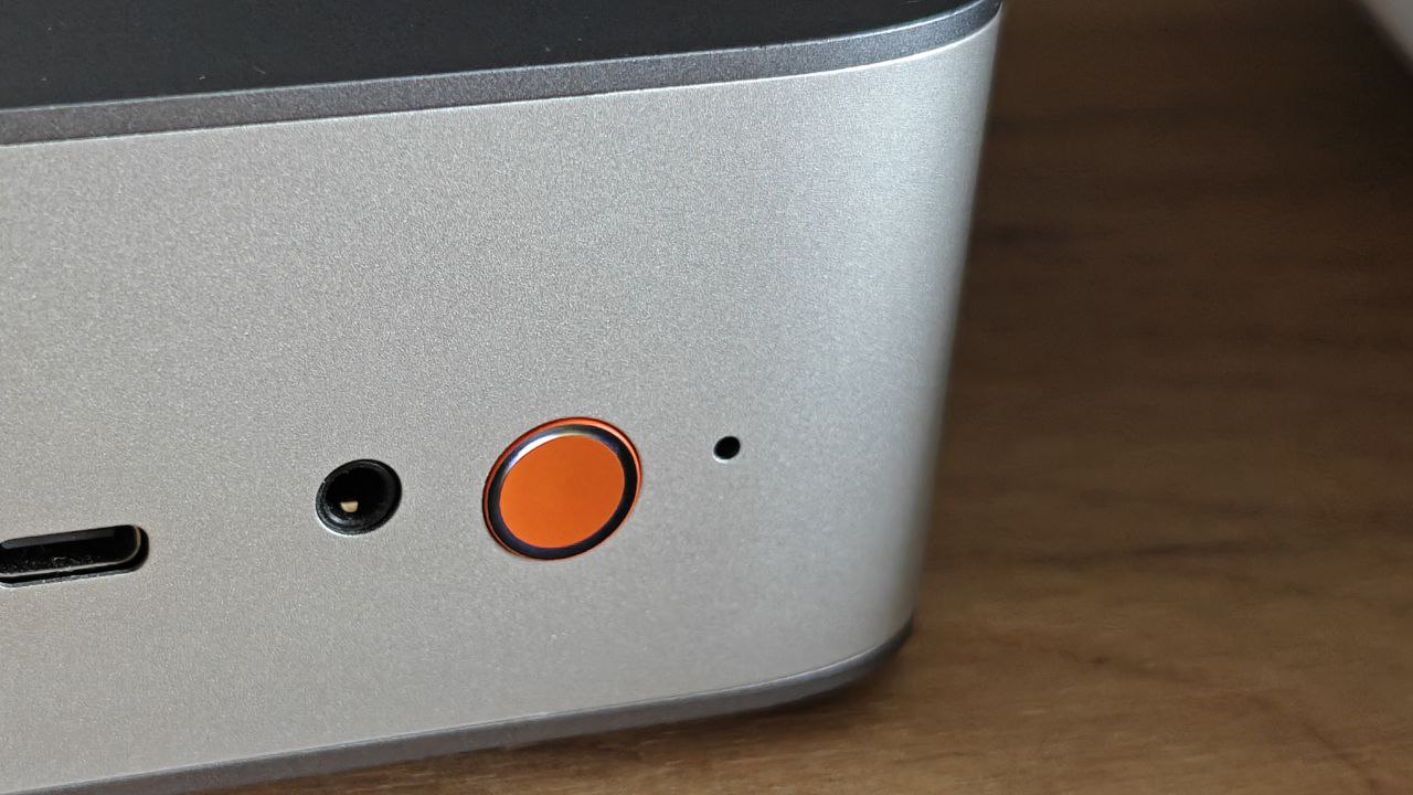 Лицевая сторона, как полагается современному устройству, имеет скоростные интерфейсы USB-A 3.2 Gen2 для подключения флешек, Type-C 3.2 Gen2 разъем для подключения любого другого гаджета или флешек с таким интерфейсом, 3.5мм для подключения проводных наушников. Украшает лицевую сторону оранжевая кнопка включения, сквозь которую просвечивает подсветка статуса питания. Перезагрузка достигается при нажатии утопленной кнопки Reset справа от кнопки включения.