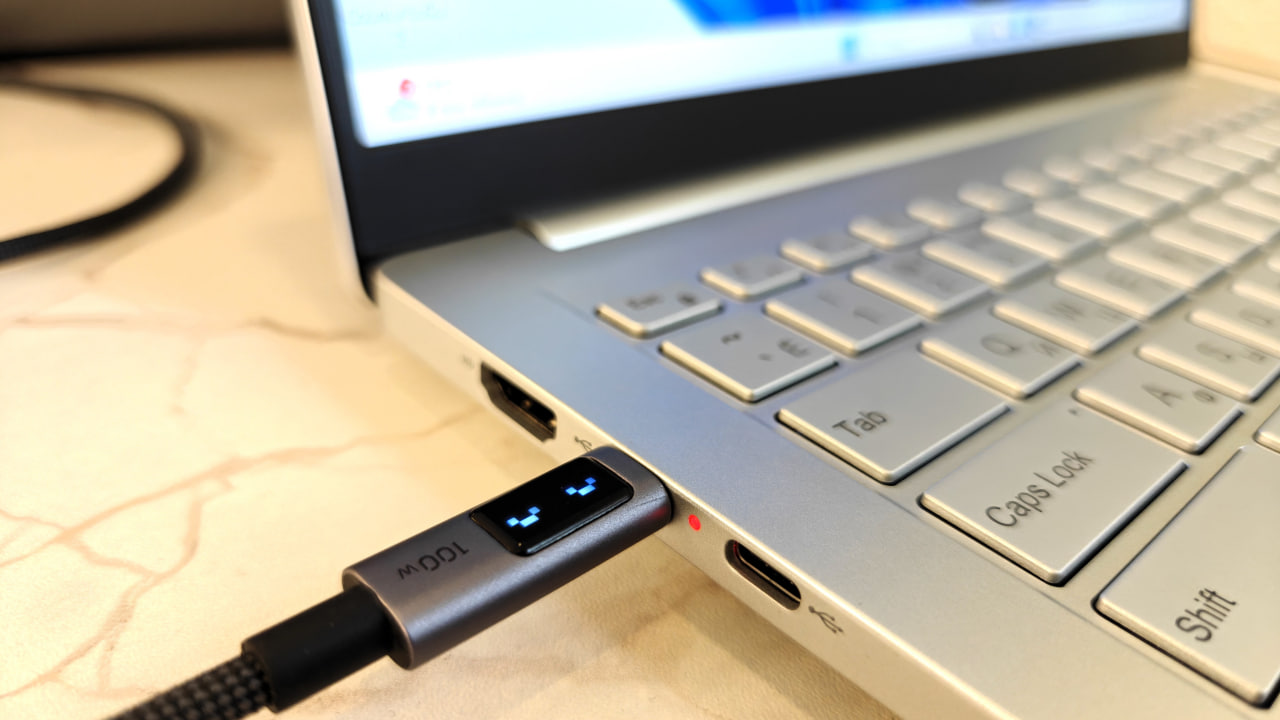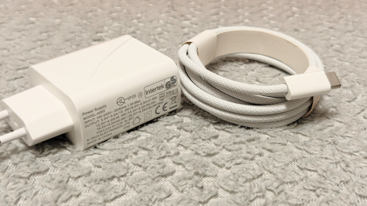 Зарядное устройство с поддержкой PD и мощностью на 65 Вт — базовый минимум для таких устройств и современное решение в плане зарядки ноутбуков, из-за его распространенности. В данном веке унификация и повсеместное использование Type-C разъема радует свободой выбора зарядных устройств и уверенностью, что вы не останетесь без заряда. Даже современные повербанки сплошь и рядом имеют поддержку PD и для запаса заряда достаточно иметь такой же тонкий повербанк. Кабель Type-C — Type-C в комплекте тоже не самый дешевый, тут плотная стильная оплетка и толстый кабель со стяжками.