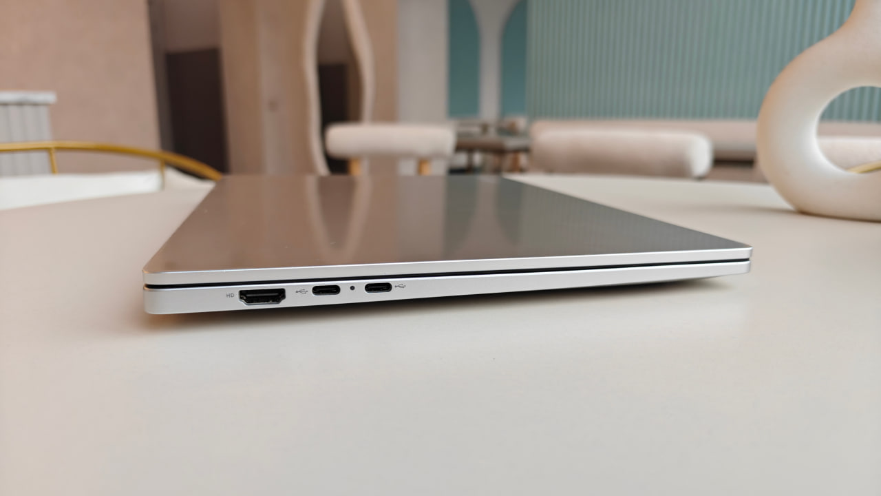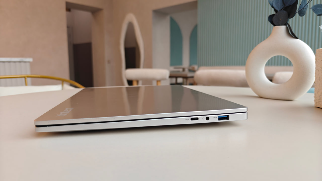 На левой стороне HDMI для подключения к внешним дисплеям и два Type-C порта для зарядки и подключения устройств стандарта USB 3.2 Gen2. На правой стороне USB-A 3.2 Gen2, Type-C такого же поколения и разъем 3.5 мм для гарнитуры. Отверстия динамиков расположены на скошенных плоскостях на боках ноутбука и при первом взгляде не видны.