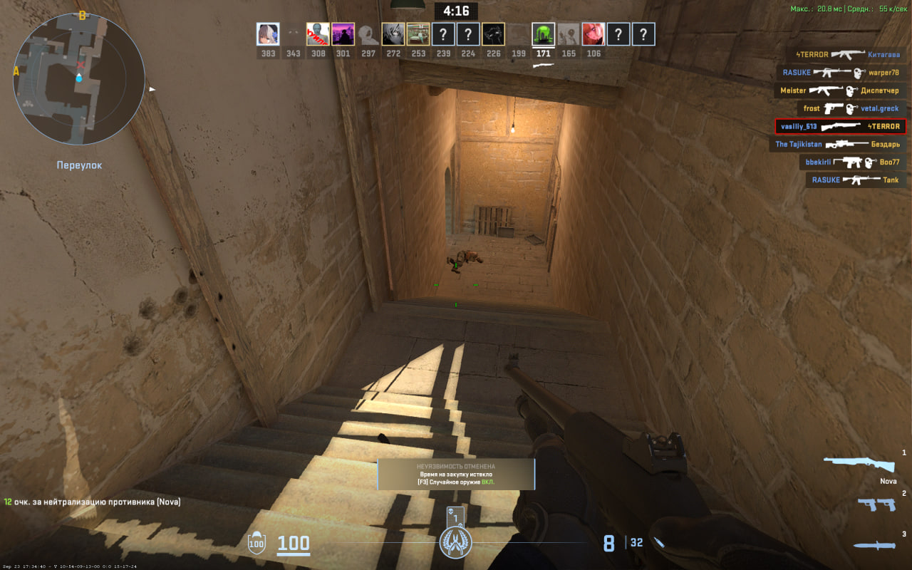 А вот и скачались игры. Запускаем Сounter Strike 2. После нескольких подходов выбрал нужный вариант настроек. На этом ноутбуке комфортно сражаться при средних настройках графики и разрешении 1920*1200. Средняя частота кадров держится на уровне 60, а температура процессора не превышает 90С. Одно удовольствие иногда оторваться от рутинных рабочих задач на часок и посоревноваться в меткости и быстроте, не расстраиваясь, что у нас маленький ноутбук и слабая конфигурация. Матовый экран и хорошая матрица дополняют комфорта во время игры даже не в самых привычных условиях.