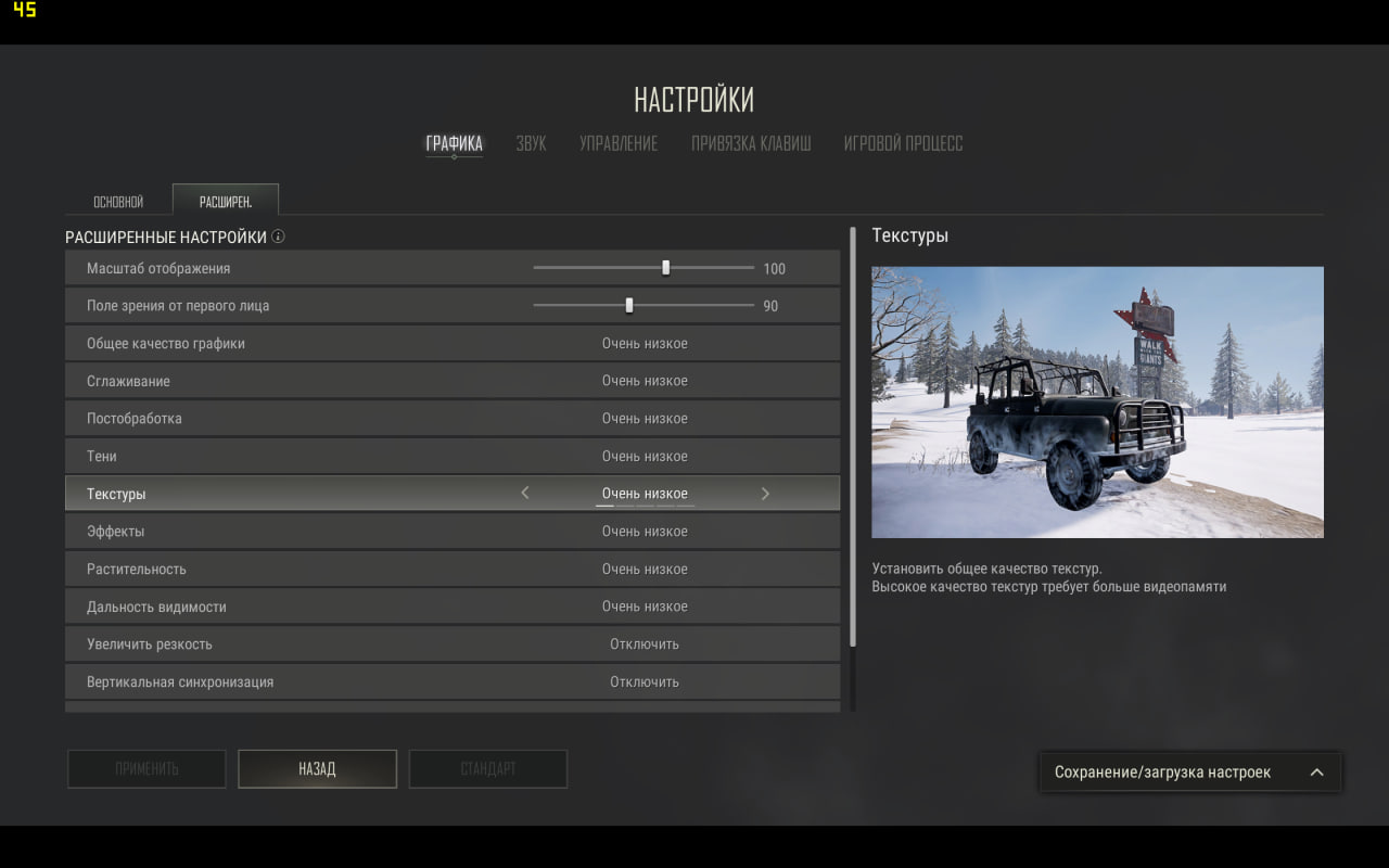 Не мог пройти мимо чемпионата PUBG как один из самых популярных мультиплатформенных шутеров. В нем важна производительность еще даже больше чем в "контре". На разрешении 1920х1080 и самых низких настройках можно выжать из процессора частоту кадров около 35-37. Если играть некомфортно, нужно еще понизить разрешение.