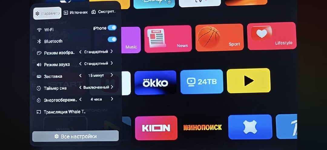 Вишенкой на торте выступает возможность управления телевизором со смартфона, при помощи собственного приложения Whale TV Casting, который дает возможность управлять ТВ как пультом или "расшаривать" контент на большой экран с любого смартфона, даже айфона через Air Play.