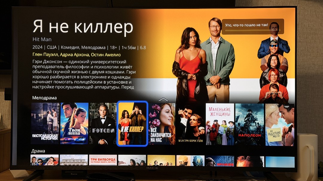 Голосовой помощник грамотно встроен в ОС, с любого экрана открывает плеер и предлагает просмотреть нужный фильм/сериал или из подписочных сервисов, или с просторов интернета, включая Rutube. Плеер грамотно находит информацию о каждом фильме, описание, актеров, создателей, трейлеры и прочую важную информацию. А также предложит фильмы, похожие на выбранный. Это удобно, потому что если картина удалась, всегда хочется посмотреть что-то такое же.